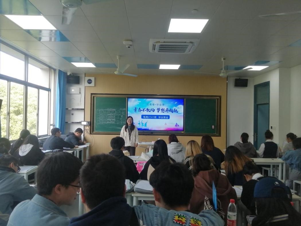 为进一步加强对电商2141毕业班工作的管理和督导,强化毕业班指导工作,提升教学质量和管理效率,在班主任严莉老师的精心筹备下,于2023年4月26日下午在思齐楼23B6组织召开了“青春不散场,梦想再起航”主题毕业班会。