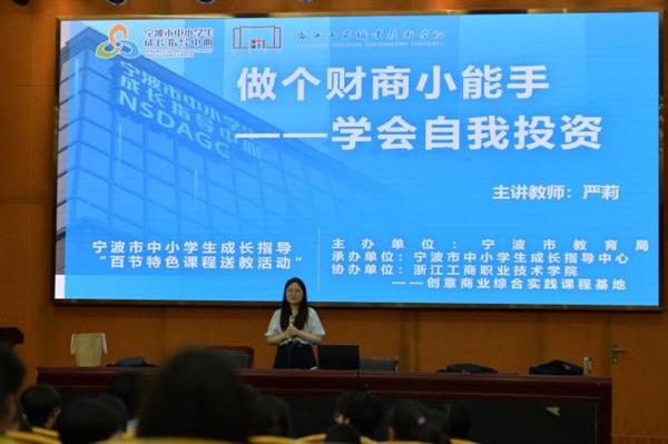 由浙江工商职院电子商务专业教师团队组建的创意商业综合实践课程基地是20个成长指导特色课程共建基地之一。该基地为我市送教学校提供了财商启蒙、商业认知、时间管理、情商修炼等多门中小学成长指导精品课程,精心打造具有财商类特色的“三全育人”课程体系。