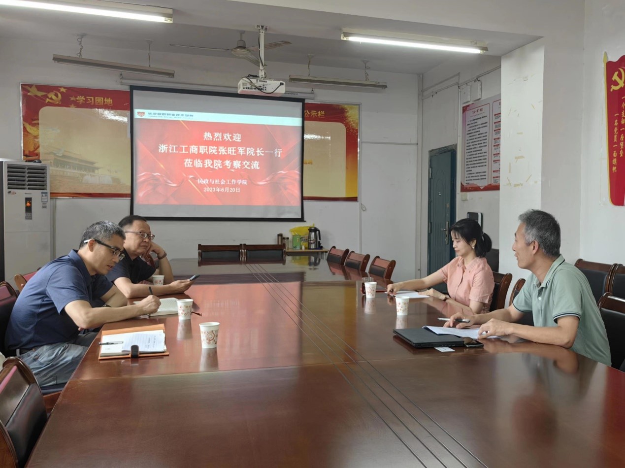 2023年6月20日,我院院长张旺军等一行前往长沙民政职业技术学院民政与社会工作学院开展调研。该校社会工作专业创建于1999年,在全国高职院校中开办最早,招生规模最大。双方就社会工作的发展现状、前景与挑战进行深入探讨与交流。民政与社会工作学院胡书记与社会工作专业主任刘老师就专业办学基本情况、课程教学、人才培养等内容进行了详细介绍,同时根据我院办学现状,对社会工作专业建设给予指导,从办学定位、教学方向、实训室建设、学生实践等方面提供宝贵意见,并表达了对我院社会工作专业开办顺利的期望与祝福。
