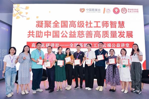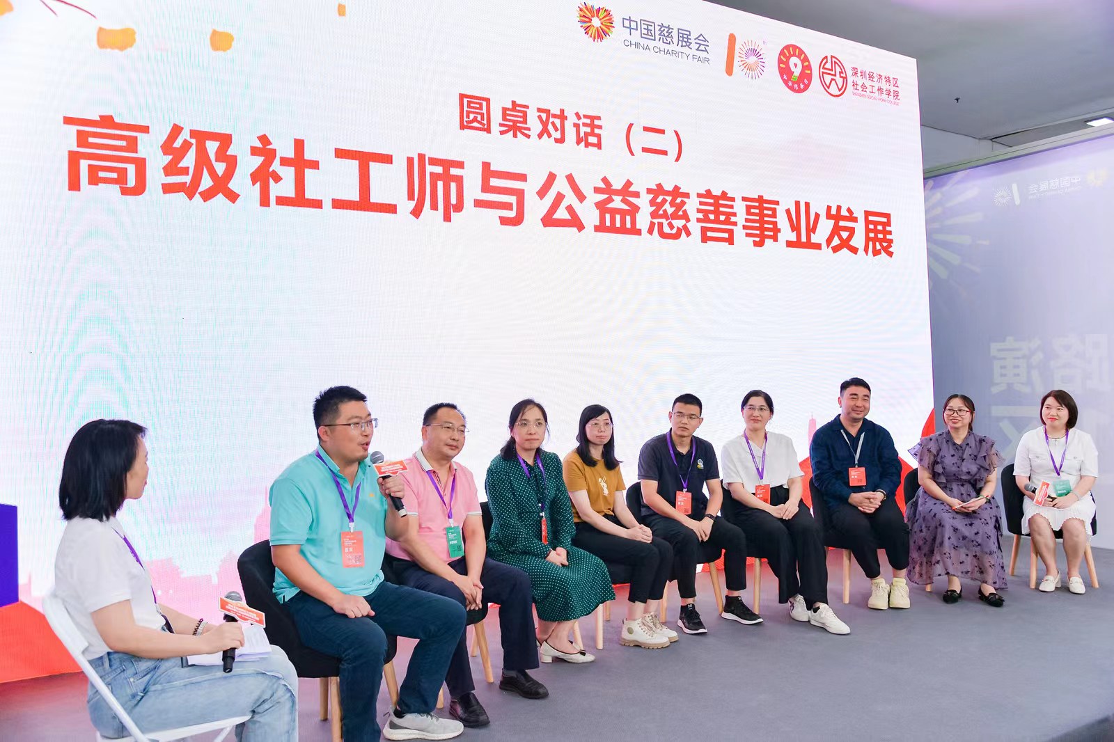 9月16日下午,由深圳经济特区社会工作学院主办的第十九期“高·见”研讲社——全国高级社工师公益讲堂于第十届慈展会上圆满举办!本期“高·见”研讲社的主题为:“凝聚全国高级社工师智慧,共助中国公益慈善高质量发展”,与往期有所不一样的是:本期研讲社首次线上与线下同步开展,在现场实现了与高级社工师们的面对面对话。其次,参与本次同场对话的嘉宾人数达到了18 位,此次强大的嘉宾阵容来自全国各地,其中包括了北京、江苏、浙江、四川、河南、福建、广东等7个省市,本期的研讲社可谓是群英荟萃、“高”朋满座!