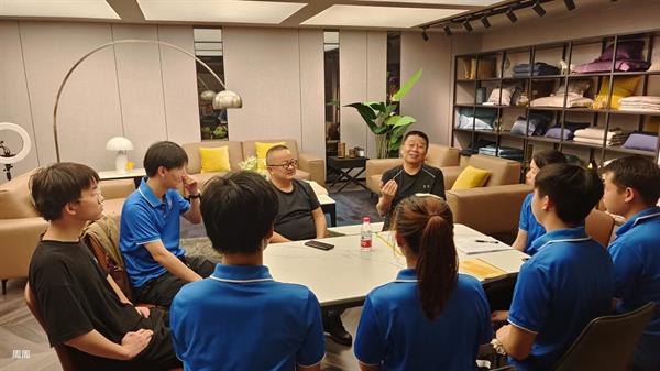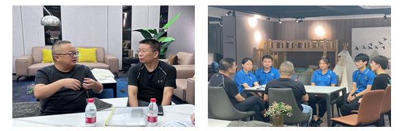 在浙江梦神家居股份有限公司,邢教授与梦神品牌营销总监王中攀一同对7名现代学徒制学生针对工作中遇到的主要问题等情况进行了复盘与总结。