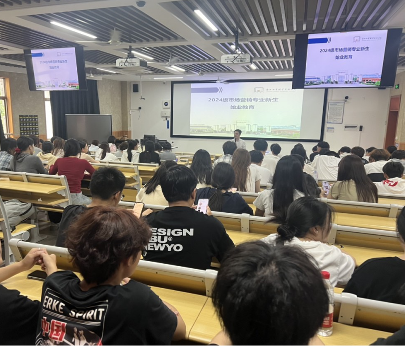 2024年10月16日,市场营销专业2024级新生始业教育在22C2教室顺利举行,本次活动由市场营销专业主任赵毅主任主讲,唐跃英副主任、各新生班主任和288名新生参加活动。
