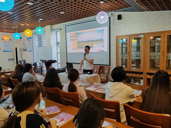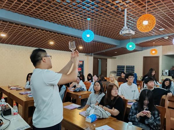 企业导师凭借其深厚的行业背景和丰富的实践经验,在课堂上深入浅出地引导同学们从直观的葡萄酒酒标入手,逐步揭开罗纳河谷葡萄酒背后的风土、文化和历史故事。他不仅详细讲解了罗纳河谷产区独特的地理环境、气候条件以及葡萄品种对葡萄酒品质的影响,还分享了关于欧洲葡萄酒市场细分、AOP(原产地命名保护)、IGP(受地理标识保护的葡萄酒)和VSIG(不受地理标识保护的葡萄酒)等专业知识,使同学们对法国葡萄酒的分级和品质有了更全面的了解。