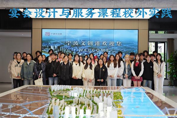 国际交流学院始终致力于为学生打造丰富的实践教学体验,帮助他们将理论知识与实际应用紧密结合,增强对行业趋势的理解与把握。为了进一步提升教学效果, 10月23日,23级休闲服务与管理专业的同学们在《宴会设计与服务》课程教师陈馨怡的带领下,前往宁波文创港诺丁山艺术中心,展开了一次具有深刻意义的校外实践活动。