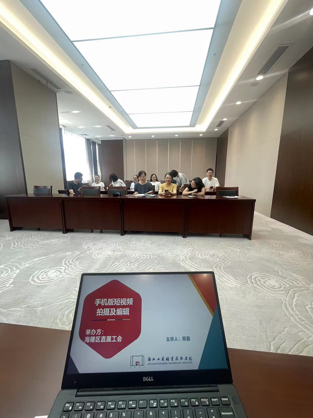 宁波市海曙区政府201会议室内,气氛异常专注而热烈。浙江工商职业技术学院电子商务专业的郑磊老师正在讲台上,为在座的海曙区直属机关工会成员们带来一场别开生面的课程——《短视频拍摄及后期编辑》。