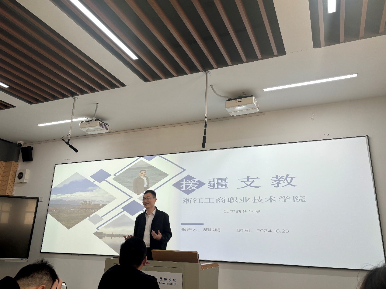 2024年10月23日下午,在数商学院教职工大会上,胡越明老师在结束了三个学期的的援疆工作后与全体分院教师分享了自己的经历。