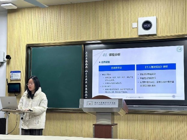 陈红玲老师介绍了《金融产品数字化营销》课程的核心内容,该课程是与本专业1+X证书考试对接的课程,注重学生实践、操作等方面,同时结合近几年数字化技术的发展,不断调整课程内容,与金融服务岗位的实际营销要求相结合。高亚丽老师对《人身保险实务》的学情分析、教学内容、教学目标等方面进行说明。该课程在下学期将采用全新的“十三五规划”教材,教学内容进行了较大调整,课程整体设计注重学生实训环节,以培养学生实际操作与团队合作的能力。马于程老师对《个人理财规划》课程进行了详细介绍,包括学生情况、教学方式和教学亮点等,强调了在该课程中采用的互动式教学方法以及与真实客户相关的应用案例教学内容,以提高学生的实践能力。王之洲老师详细说明了《职业礼仪与沟通》课程,总结了在多轮教学过程中发现的问题和本轮教学过程中会改进的教学模式,以更好地满足学生的学习需求。