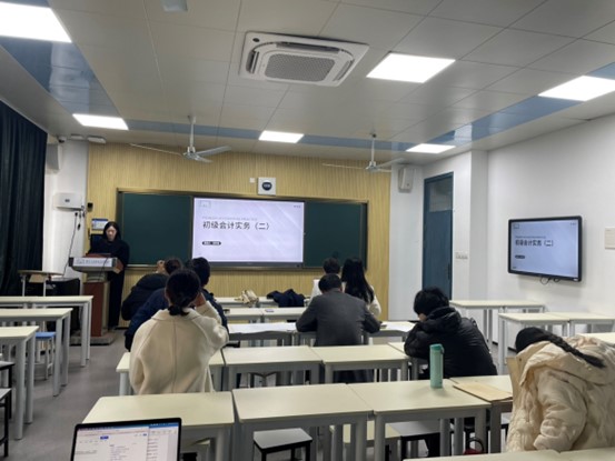 2024年1月10日下午大数据与会计专业教师在21A6教室举行了说课教研活动。在教研活动中,各位老师对下学期承担的课程作了详尽的说明,分析了学生情况,对教材、教法、课程内容衔接等方面发表了独到的见解,并对下学期后续教学安排提出建议。其中,首次承担《初级会计实务》、《经济法基础》、《财务机器人应用与开发》的年轻教师单子纯、杨琪、童佳宁各自对相应课程作了很好的分析和说明,老教师们也提出了一些中肯的建议,讨论热烈而有成效。