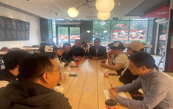 走访第二站一行人来到肯德基的千润发门店。在这里,校方与企业负责人以及正在实习的学生围坐一桌进行了深入交流,气氛融洽。交流中,楼晓东副校长详细询问了学生的个人情况以及在工作中的具体表现和学习情况,关心他们在企业的生活适应情况。学生们纷纷表示,通过在肯德基的实习,他们不仅提升了实际操作能力,还对市场营销有了更深刻的理解。企业负责人则对我校学生的表现给予了高度评价,认为他们勤奋好学,适应能力强,为企业注入了新鲜活力。