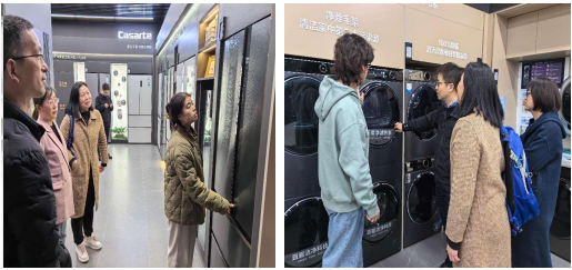 宁波华商智能家居股份有限公司新零售中心品牌部经理姜晓峰、宁波华商智居新零售中心总店店长陈海霞和胡勇热情接待了到访教师,并参与了此次企业调研。在两位店长的引导下,教师团队参观了华商智居总店展厅,深入了解了包括智能安防、智能照明、智能家电等在内的最新智能家居产品。
