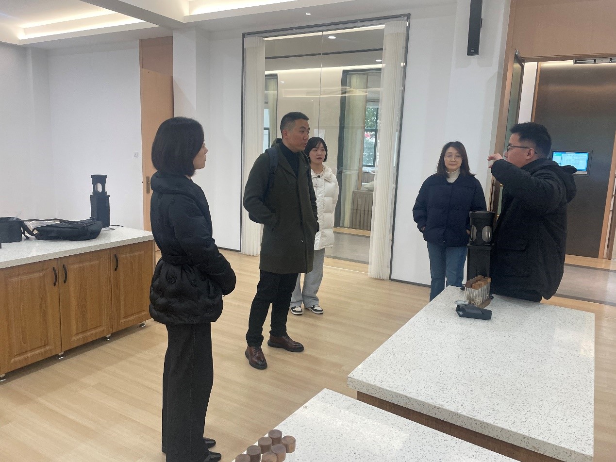 宁波市甬江职业高级中学诸鑫鑫副校长简要介绍了学校的发展历史、专业布局、办学特色、成果荣誉等信息,并就中职旅游类专业与我校高职旅游类专业进行中高职一体化合作达成了初步共识。宁波市甬江职业高级中学旅游专业主任胡桦鑫老师重点介绍了专业历史、招生规模、师资优势、实训条件等信息,并带领3位老师实地走访了客房实训室、前厅实训室、餐饮实训室、智慧酒店实训室,现场演示了咖啡烘培实训室的新型器材。