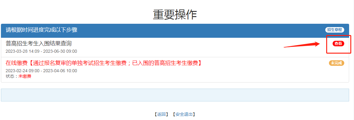 2、普高招生考生入围结果查询栏点击查看是否入围(结果栏显示为:“已入围”或“未入围”)