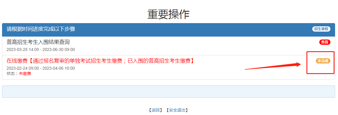 3、已入围考生点击在线缴费进行缴费,缴费时间截止4月1日14:00整,未入围考生不需要缴费。