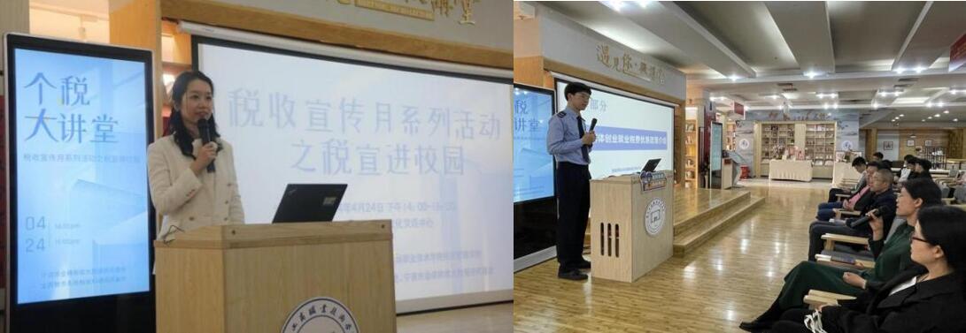 在第33个税收宣传月之际,经管学院依托“全国税务系统税收科研调研基地”和“宁波市金穗税收大数据研究基地”,联合宁波市鄞州区税务学会开展“税收宣传进校园”“税收宣传进商圈”系列活动,通过举办税收大讲堂、设立税收宣传角、税收宣传进教室和商圈等丰富多样的形式,普及税收知识,提升高校教师、大学生的税务素养和纳税意识。