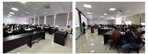 这次活动的流程设计得既充实又富有挑战性,共分为四个环节。活动伊始,本次活动的负责人——顺丰人力资源部胡莹老师向学生们详细介绍了中国最大全球第四综合供应链集团——顺丰的发展历程、多元化的业务形态、顺丰速运宁波区职能和相关工作范畴以及未来的发展规划,使同学们对这家国内领先的顺丰速运有了更加全面的认识。