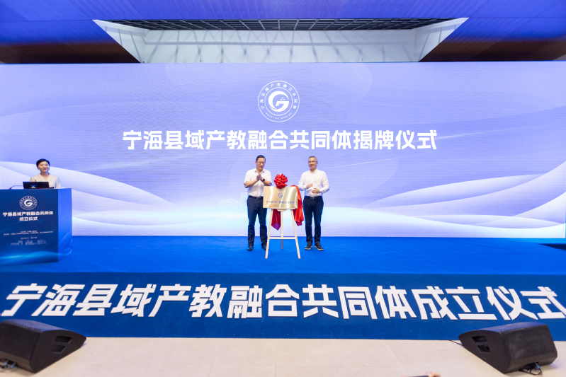 随后,郭文魁和史习明上台为宁海县域产教融合共同体揭牌。