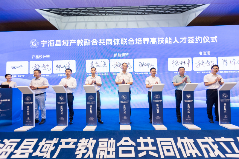 大会公布了宁海县域产教融合共同体领导小组成员名单,并分别为宁海县域产教融合共同体浙江工商职业技术学院附属学校、宁海产业人才学院合作高校、宁海县域产教融合共同体实训基地授牌。
