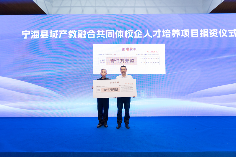 会上还举行了宁海县域产教融合共同体联合培养高技能人才签约仪式以及校企人才培养项目捐资仪式。值得一提的是,为了推进宁海县域模具产业的发展,今年6月初,浙江省模具协会、宁海县模具协会与我校共建成立了宁海模具产业学院,本次大会宁波华宝智能科技股份有限公司为其捐资1000万元人民币,共同探索建设混合所有制产业学院。