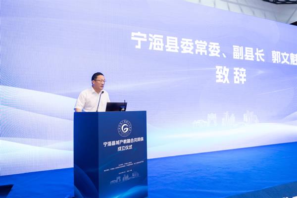 宁海县委常委、副县长郭文魁致欢迎辞。他首先代表宁海县委县政府向参会嘉宾的到来表示热烈欢迎,向长期以来关心支持宁海发展的各界朋友致以衷心感谢!随后,他简要介绍宁海县的基本情况,重点就人才强县战略作阐述分享。他表示,打造宁海县域产教融合共同体,能够发挥浙江工商职业技术学院对宁海县职业教育的拉动与示范作用,目的是为了通过共同体的引领,扩大宁海本土化招生、培养、就业规模,建立一体设计、贯通衔接、灵活多样的工学一体化的县域职业教育产教融合人才培养体系。他强调,共同体成立后,各成员单位之间要紧密配合,建立完善的沟通协调机制。学校资源、企业资源、政府资源、行业资源等要相互融通,形成1+1大于2的效果,要在改革县域职业教育办学体制机制和人才培养模式、共编人才培养标准、共育技术技能人才、共建成果转化平台等方面共同努力,着力培养更多符合宁海县域产业需求的高素质技术技能人才,基本形成制度供给充分、条件保障有力、产教深度融合的良好生态,为宁海经济社会实现更高发展提供坚实的人才支撑。