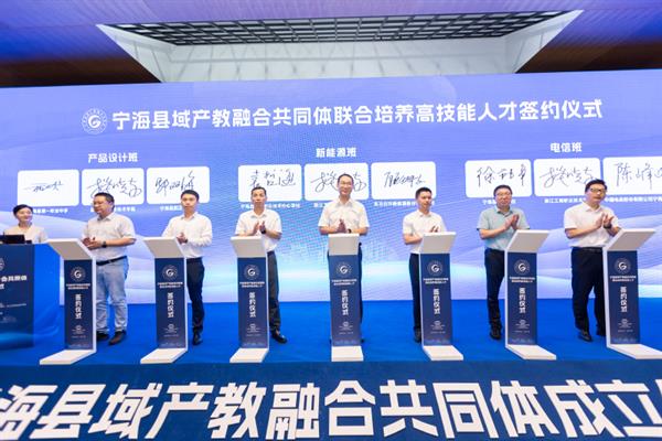 此次共同体成立大会的圆满举行标志着宁海县域产教融合共同体的正式启航。作为发起单位之一,我校将以共同体建设引领,将产业发展需求更好融入人才培养全过程,促进教育和产业体系人才、智力、技术、资本、管理等资源要素集聚融合、优势互补,推动人才培养地域上由独立向整体转变、主体上由单一向多元转变、组织上由分散向集约转变,培养更多高素质技能人才,基本形成制度供给充分、条件保障有力、产教深度融合的良好生态,为经济社会高质量发展提供人力资源支撑。
