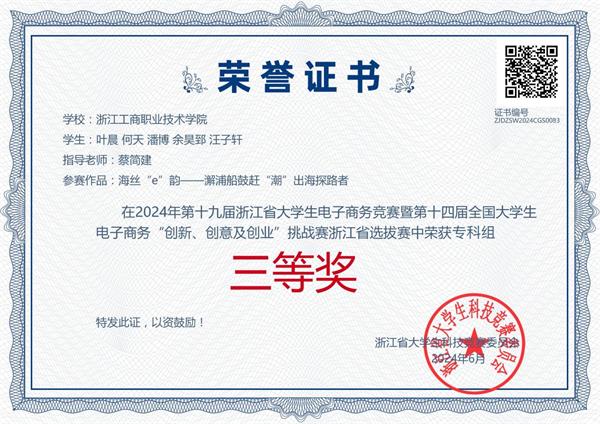 电商专业获2024年浙江省大学生电商竞赛三等奖