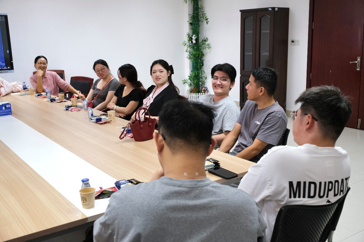 校友们首先在会议室举行了座谈会,与当年的班主任杨银辉老师欢聚一堂。大家畅谈毕业后的工作与生活,分享在各自岗位上的收获与感悟。有的同学已在电商行业深耕,成为业务骨干;有的自主创业,开辟了新天地;也有的在继续学习和转型中不断探索。班主任关切地询问每位同学的发展近况,为他们的成长感到由衷欣慰。