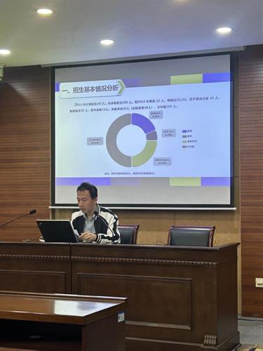 在总结交流环节,跨境电商专业主任许辉对2025年跨境电商专业的招生工作进行了全面汇报。他详细介绍了本年度招生计划的完成情况、生源质量数据分析、各区域生源结构特点,并重点回顾了围绕跨境电商专业特色所开展的一系列线上线下招生宣传活动及其成效,从而使得跨境电商近几年招生成绩取得了较大的进步,吸引了众多高分考生前来报考。随后则从专业内涵建设的角度,汇报了本专业在课程体系优化、校企合作深化、实践教学强化等方面所做的努力,强调通过提升人才培养质量来反哺招生吸引力,形成了“培养-就业-招生”的良性互动初步格局。