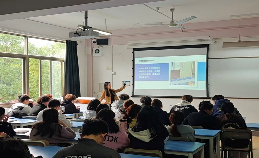 课堂现场气氛热烈,电商2441班的同学们展现了极高的参与热情。各小组迅速进入状态,有的在激烈讨论、绘制草图;有的则大胆动手,开始搭建原型。“小心!左边加固!”“我们的底座要更稳!”“时间不多了!”……课堂里充满了思想的碰撞与合作的火花。学校特邀的拍摄人员用镜头全程记录下了这些专注的面孔、创新的设计和成功的欢呼,这些珍贵的影像将成为专业建设与宣传的生动素材。