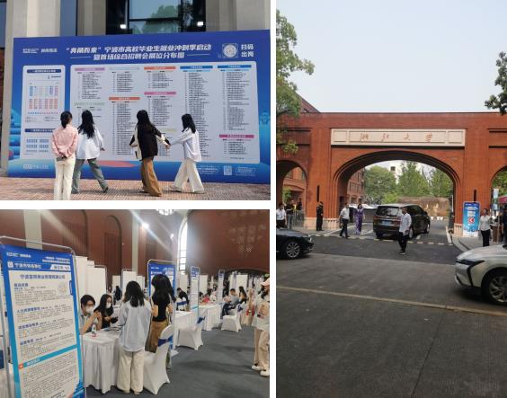 2025年4月20日, 电商专业c老师带领电商2323、2324班102位同学参加在浙江大学宁波校区的宁波市高校毕业生综合招聘会。同学们踊跃投递简历,和各家用人单位积极洽谈。展现了工商学子扎实的专业知识和良好的风貌。