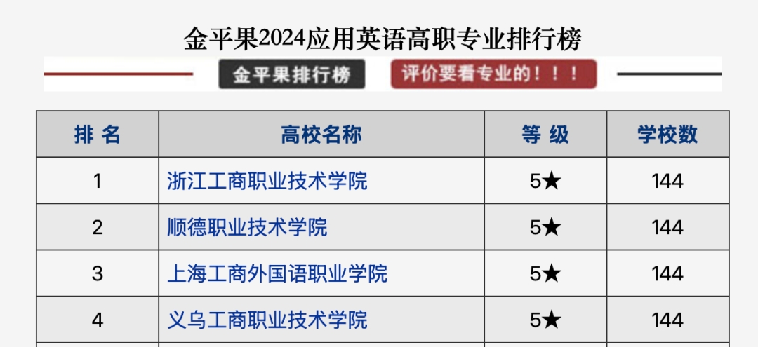 2023年、2024年以及2025年,浙工商职院的应用英语专业连续三年在“金平果”排名第一!