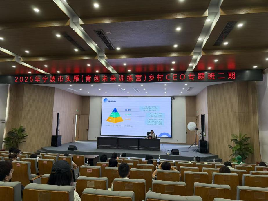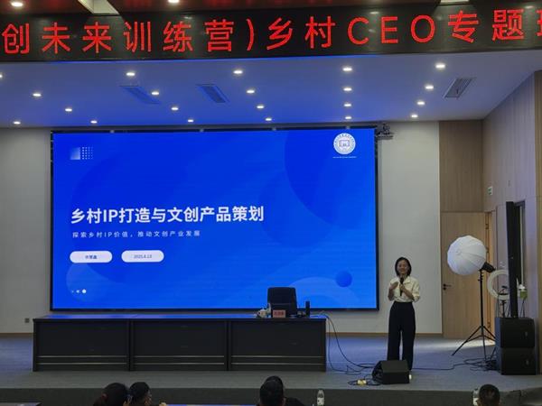 2025年8月13日,数字商务学院市场营销专业教师许慧鑫受宁波市农业农村局邀请,在奉化滕头村为宁波市头雁(青创未来训练营)乡村CEO专题班一期学员讲授《乡村IP打造与文创产品策划》专题课程,分享乡村IP建设与文化产业创新实践。