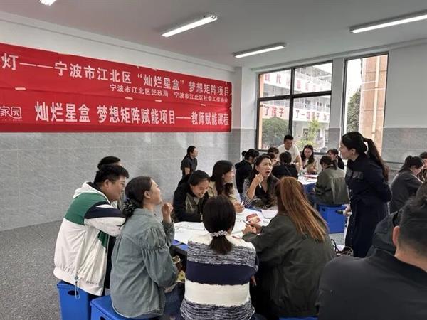 9月23日,宁波市江北区“星星点灯”——“灿烂星盒”梦想矩阵项目组赴四川省凉山州越西县,开展教师赋能活动。本次活动特邀了浙江工商职业技术学院社会工作系教师、高级社工师张露娜带领,主要围绕儿童青少年心理特征、平等沟通技巧及生命教育等社会工作实务内容展开,为当地教师带来了一场深刻且富有意义的心灵之旅。这堂课摒弃了枯燥的理论说教,全是能即时运用的 “实战技巧”,其核心目标只有一个:让老师和学生的心贴得更近。