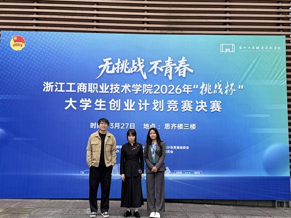 在充分备赛与细致打磨的基础上,3月27日下午13:30,工业设计专业学生团队参加浙江工商职业技术学院2026年“挑战杯”大学生创业计划竞赛决赛。江鑫怡、陈佳悦、邱慧乐、倪雨薇、陈浩、郭忠科同学组成的项目团队稳定发挥,顺利完成现场答辩,“骨嵌智生”项目获得校级特等奖,成功晋级省赛网评。