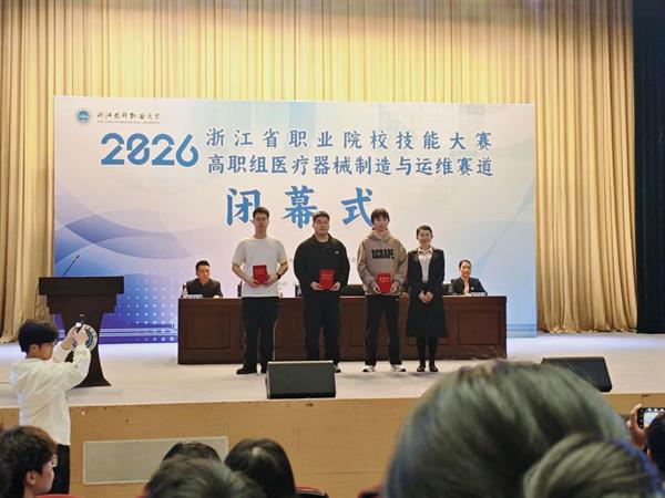 4月16日至18日,2026年浙江省职业院校技能大赛“医疗器械制造与运维”及“人工智能”赛道现场竞赛圆满举行。其中,由材料成型专业罗暹博士与工业设计专业杨剑萍教授联合指导,工业设计2422班李妍丽、工业设计2522班王若曦、机电一体化2511班胡立伟、模具2411班吴苏航同学共同完成的 “适老化智能助行器的模块化设计” 项目,荣获省二等奖。